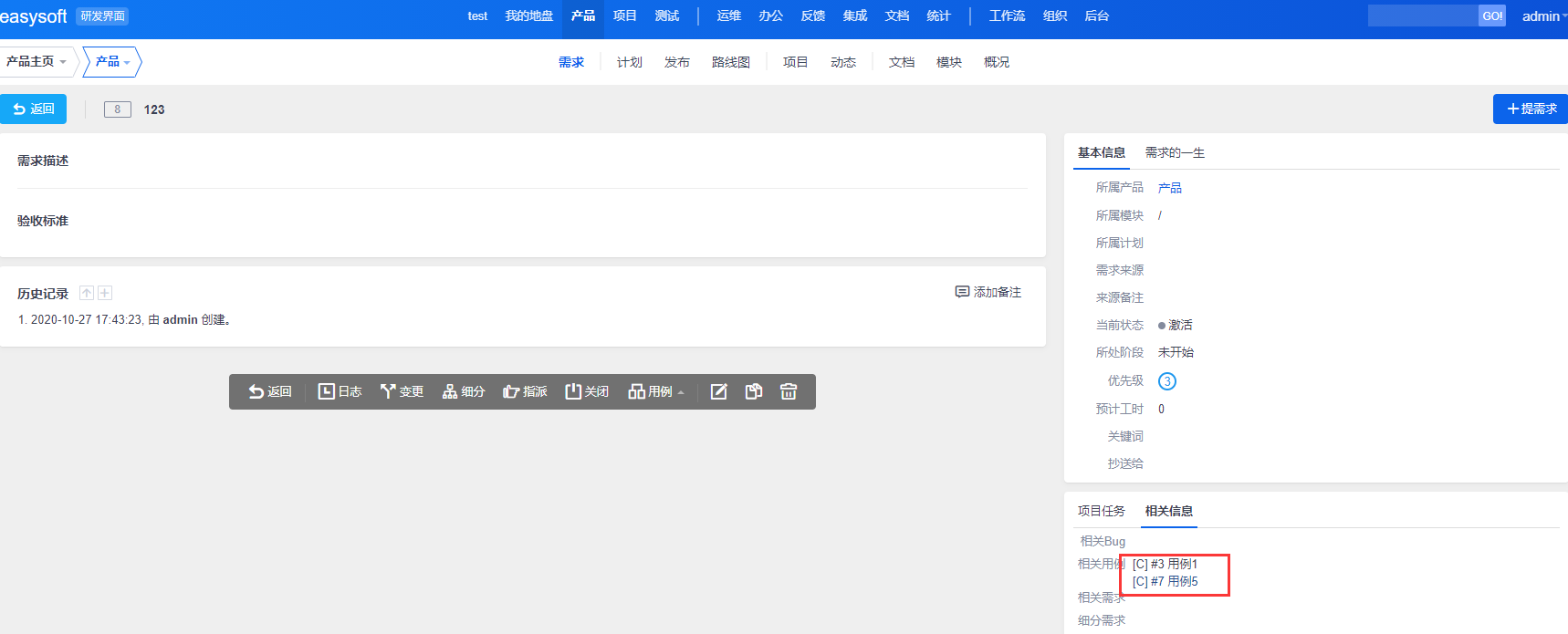 需求关联的数据较多,不太可能将所有信息都展示到需求详情页面的,关联信息可以通过点击关联的数据进行跳转查看。