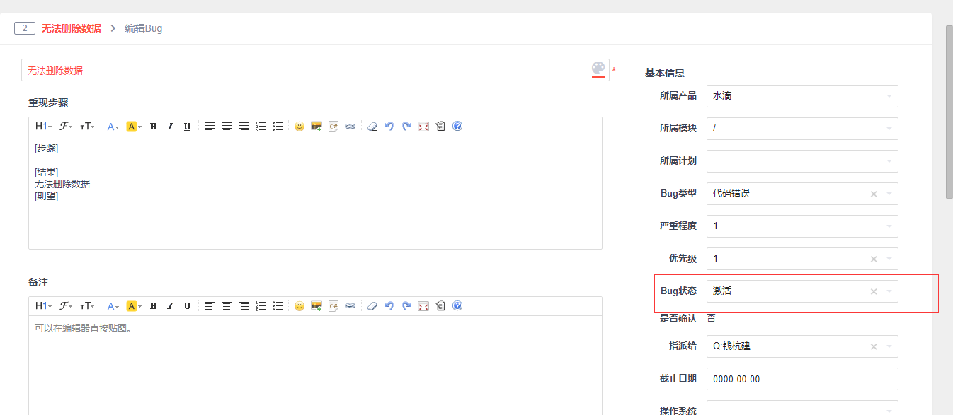 bug编辑页面更改状态之后,点击保存,无法保存