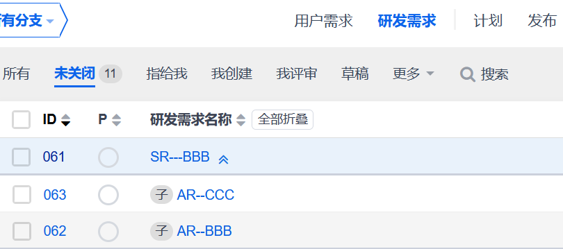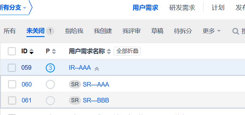 初始需求细分为系统需求 , 对应禅道的研发需求功能