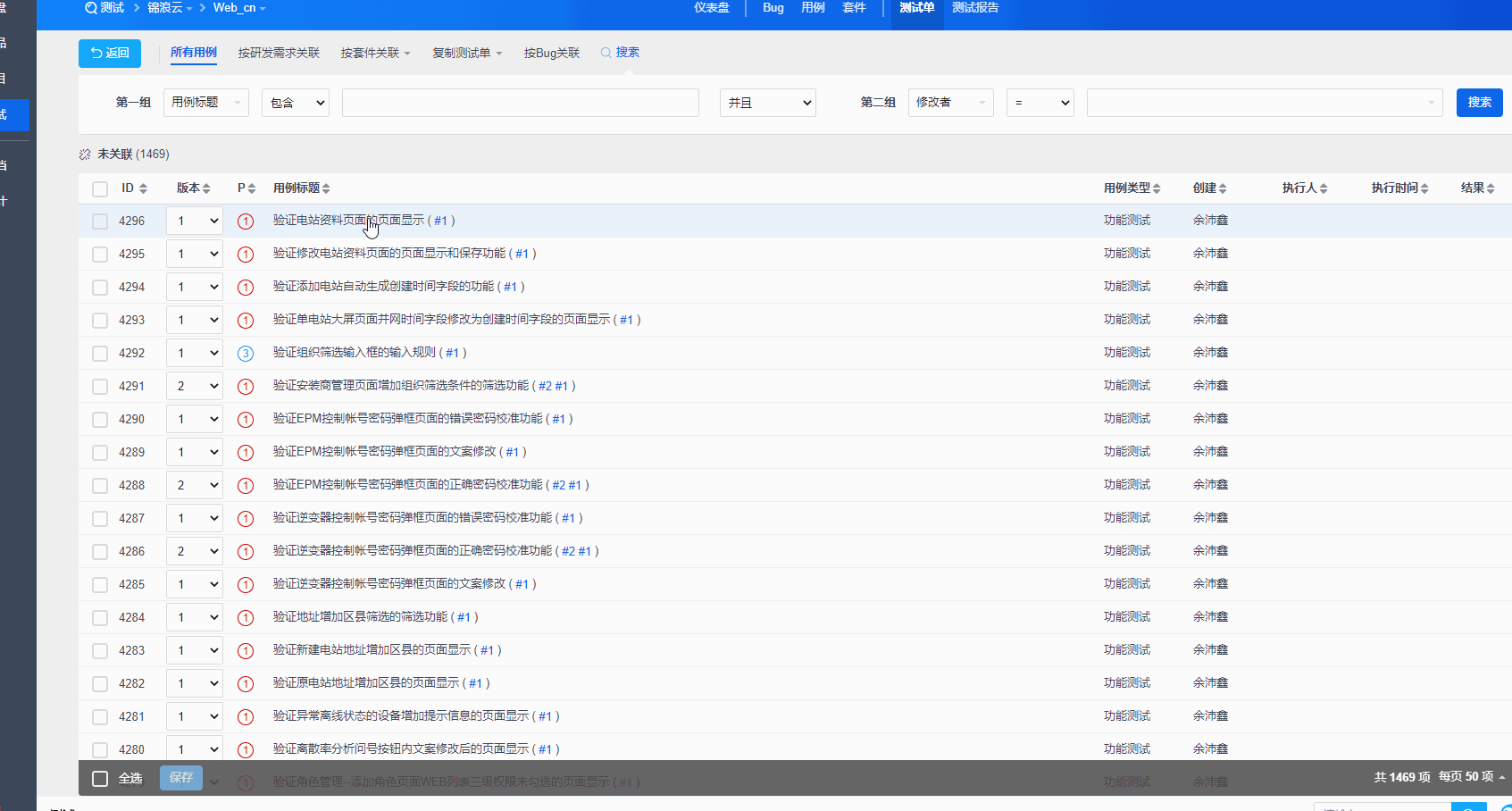测试单关联测试用例时,增加根据需求点筛选测试用例。