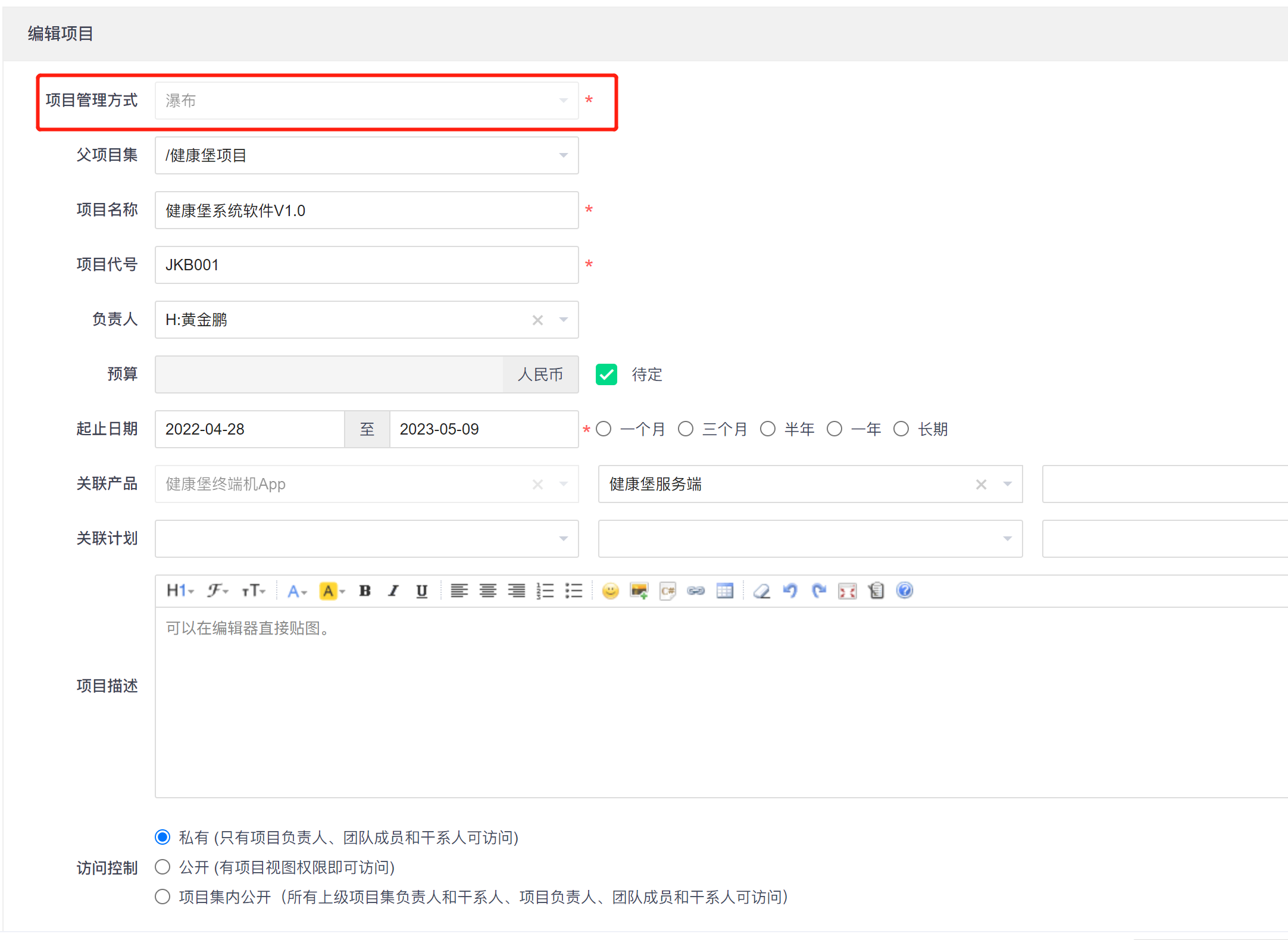 2.项目下创建数据后删除项目下的数据后也无法修改项目类型。