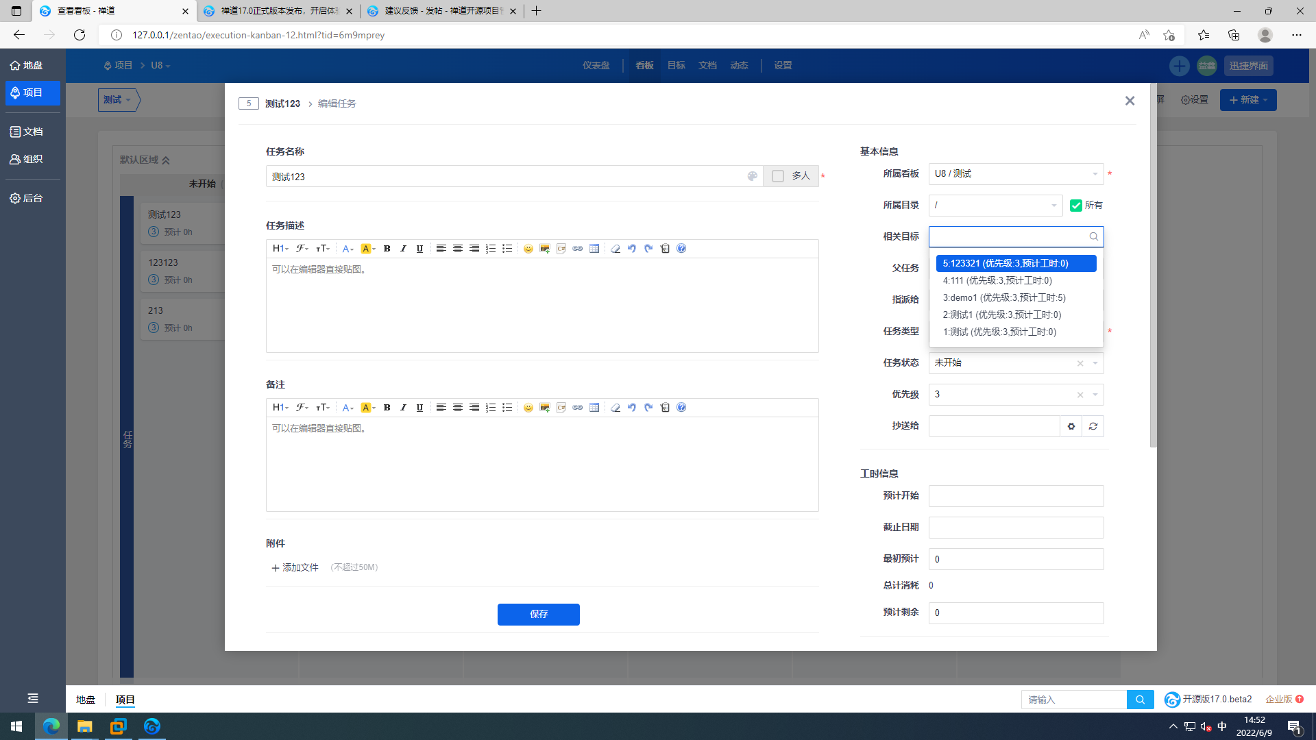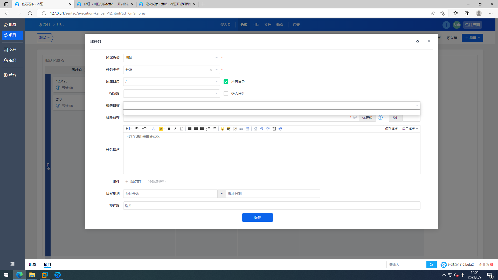 迅捷界面新建任务bug