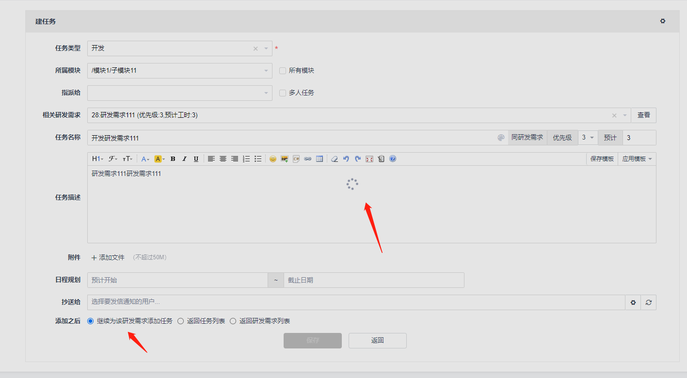 1.首次保存后页面不刷新,手动F5刷新后,继续编辑和保存,就能继续添加任务了,地址栏:/zentao/task-create-16-29-0.html#app=project