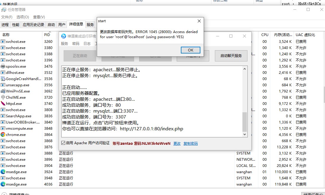您好,关于17.1开源版明明设置了apache(8082)和mysq(3306)l的端口,点击启动禅道却是81和3307