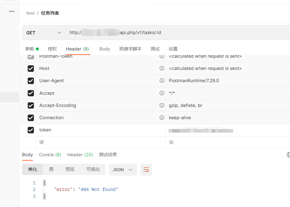 手册中的这个获取任务详情的接口,我发送请求响应失败,可以帮我排查下原因吗,有设置登录token