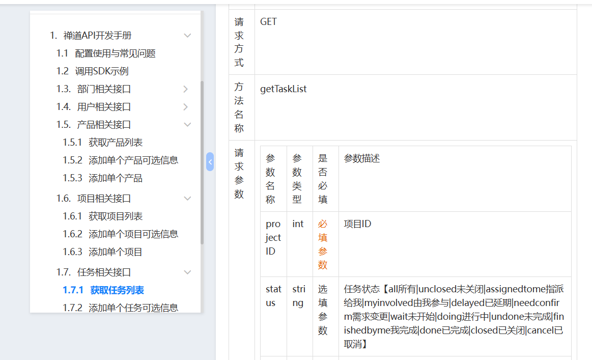 如果咱们当前使用禅道的大于15版本,可以参考这个api手册:https://www.zentao.net/book/apidoc-v1/664.html