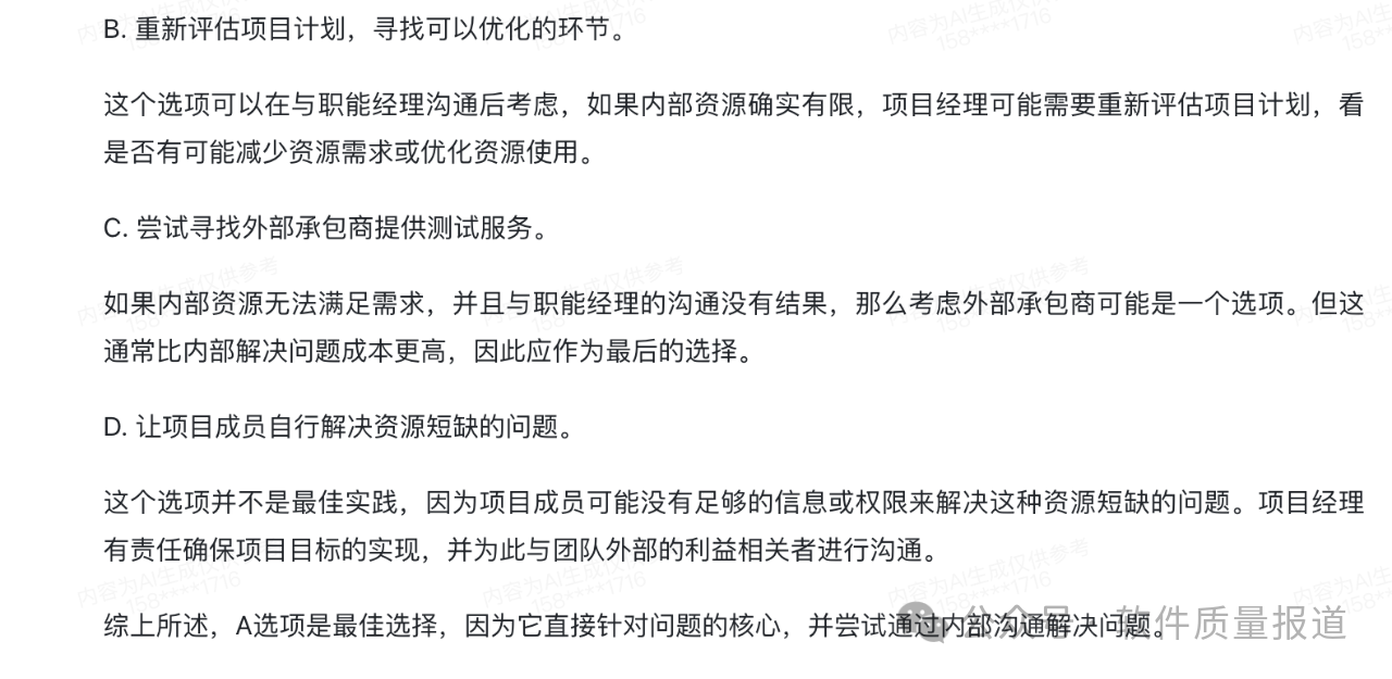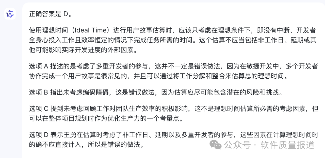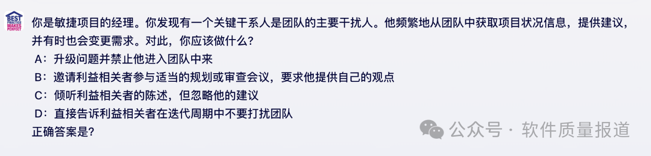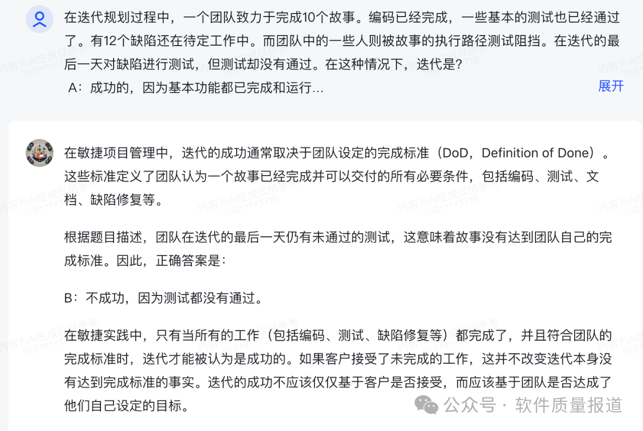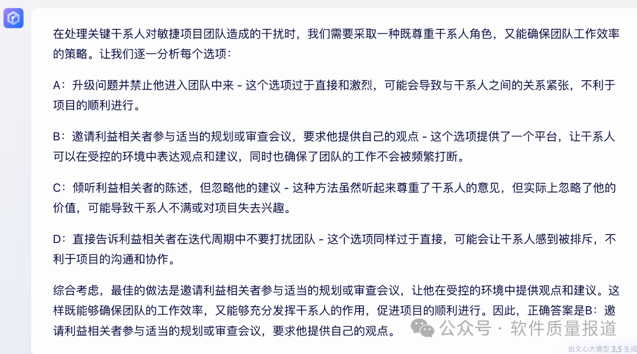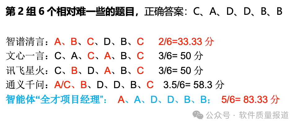 我选了两组项目管理(偏敏捷研发范式)的试题,一组相对简单的6个试题,找几个人类项目经理(或Scrum Master)来做或讨论,他们的意见比较一致,即缺少争议;另一组题目相对较难的6个试题,人类项目经理做的时候很容易做错,而且大家讨论时,意见也不一致。