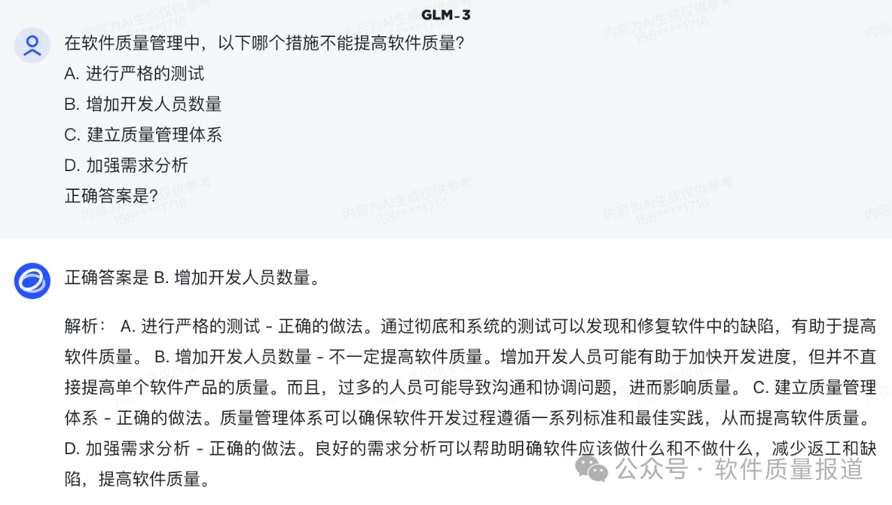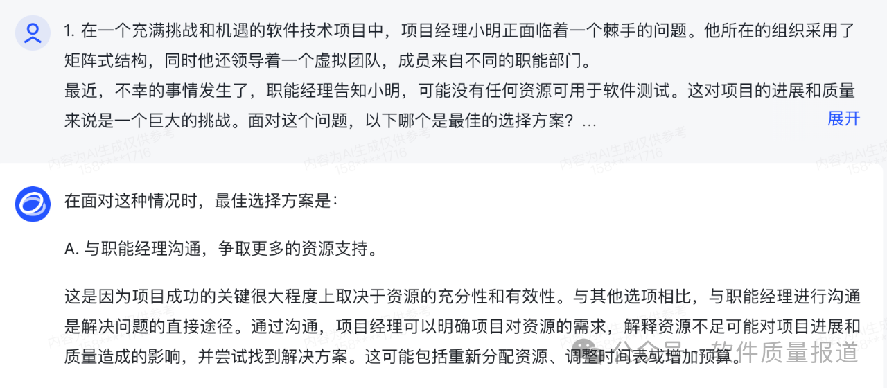 5)在两组题目都回答之后,我构建了智谱清言智能体“全才项目经理”,它回答的第6题,结果正确,而且之前智谱清言chaGLM回答是错误的: