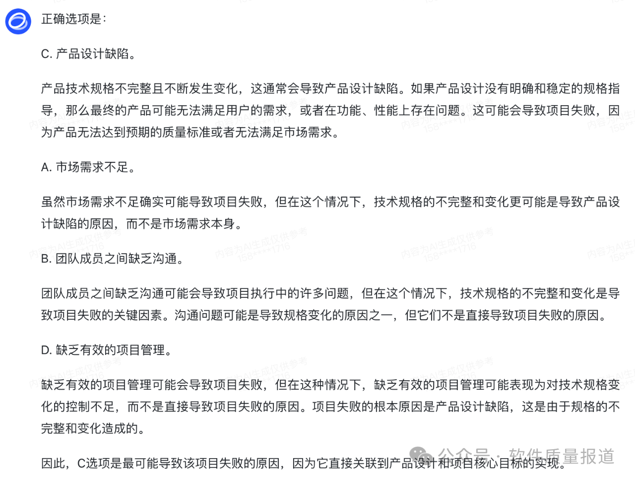 1)智谱回答的第1题,答案错误,正确答案是C,文心一言和星火答对,而通义千问干脆把A/C都放上(我就算它半对