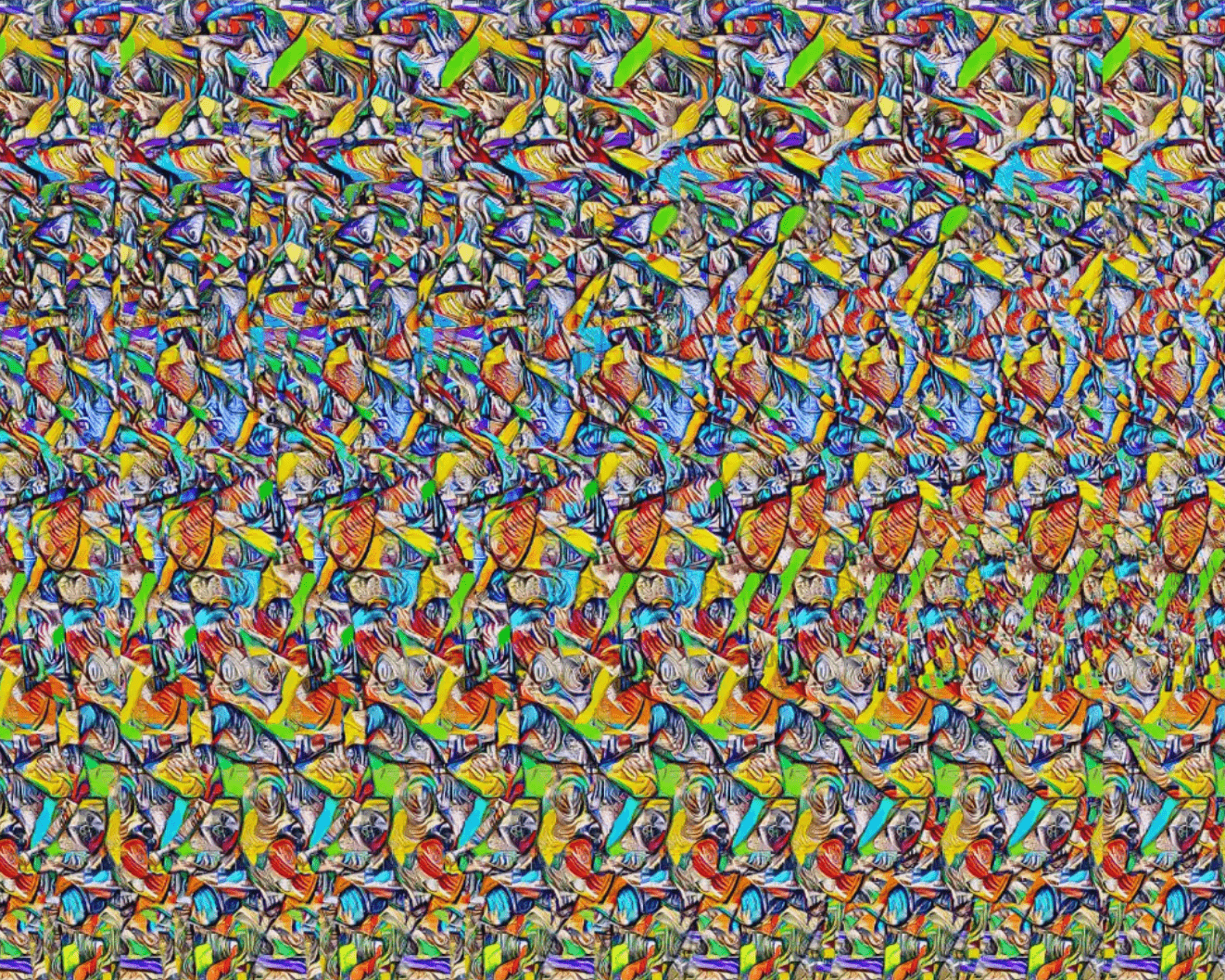 如何看出图中的另一个世界呢?我觉得有两点:一是把眼睛要盯着中间看,看模糊了另一个世界自然就出来了。二是从大局出发看,不要看图片的局部或者细节。