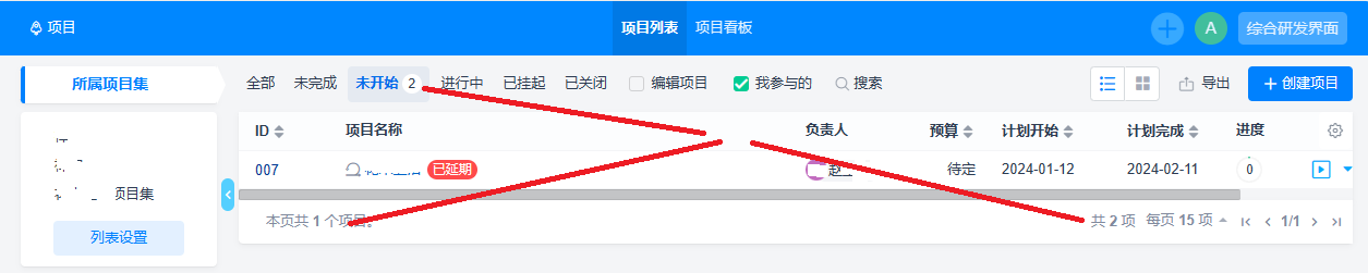 “项目-项目列表-未开始”页面,统计数据不一致?
