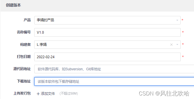 后台接口调用实现类似如下的禅道创建或编辑版本的业务逻辑: