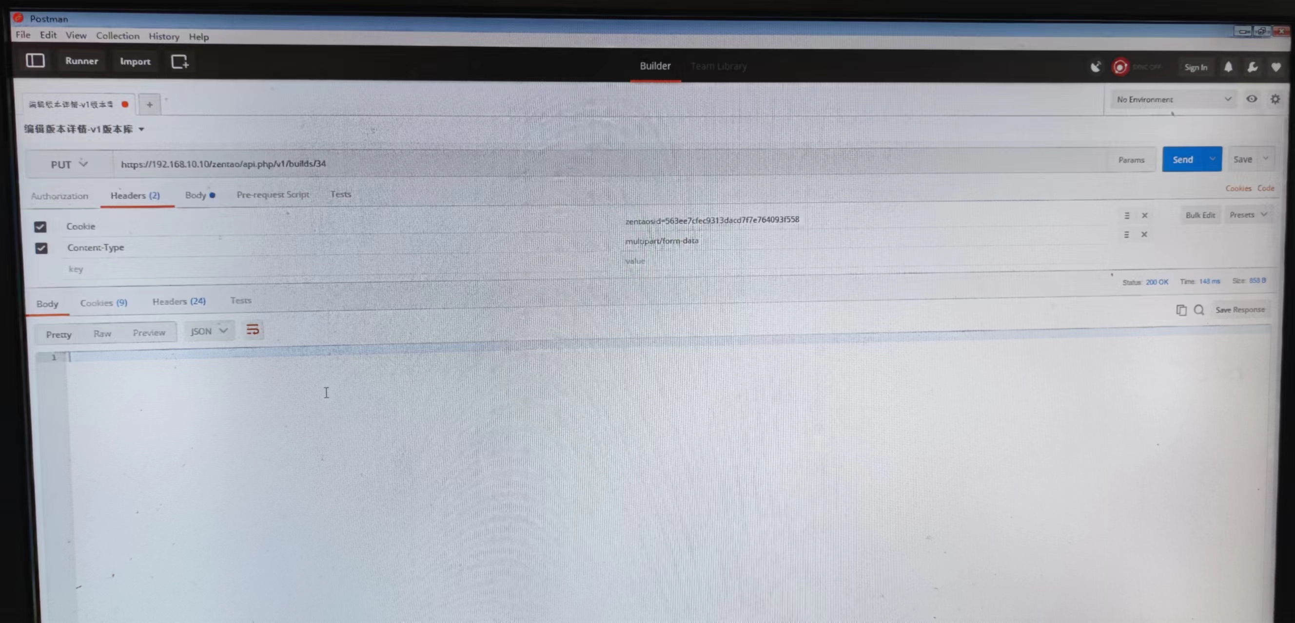 3.我查看禅道的zt_build表,发现该表中并没有直接存放上传发行包的files字段和labels字段名称,我初步考虑,只通过这一个编辑版本的接口调用是不是不能上传文件?我看到禅道的文件表zt_file表通过objectID等于zt_build表buildId可以把上传的文件和本次版本关联起来。所以,我在想,是不是需要自己先调用文件上传的接口独自上传这个版本的发行包?但实际没有找到这个文件上传的restful接口是哪个?(如果是这样还请帮忙提供一下这个接口调用的api实例)