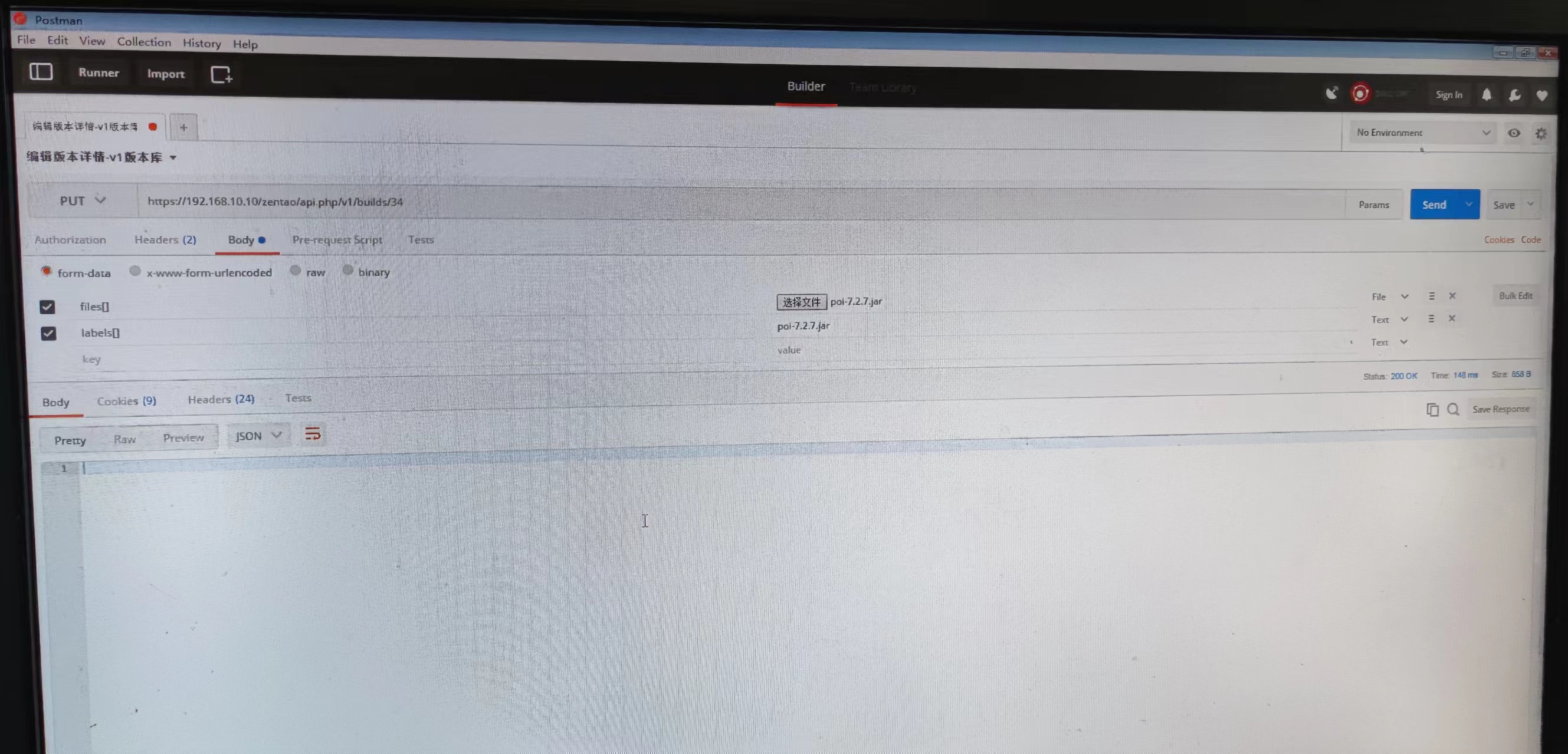 1.我请求编辑版本的接口对不对?(如这些参数:PUT接口,header的content-type:multipart/form-data,body用的form-data只涉及上传文件包的两个字段files[],labels[])