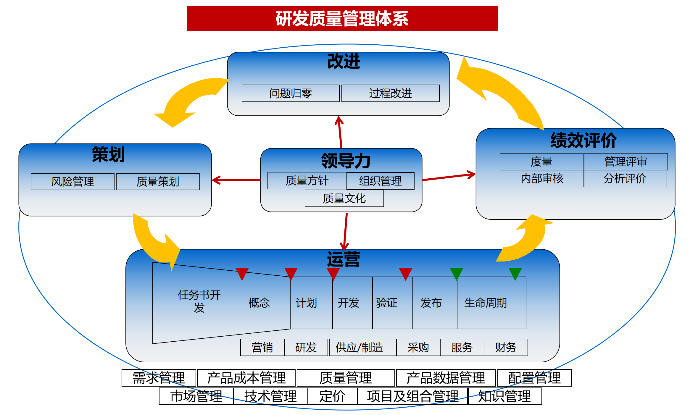 产品研发质量的工程体系需要从工程角度考虑产品研发工程特点,即:产品规划流程、产品开发流程、开发技术、项目管理以及对应的工具、方法。