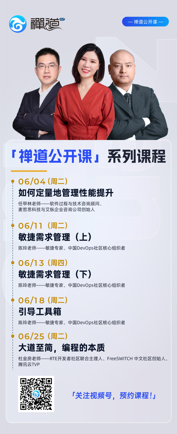 本月的禅道公开课,我们邀请到了任甲林老师、陈玲老师、杜金房老师三位行业资深老师,为大家带来一系列的高品质、专业课程!