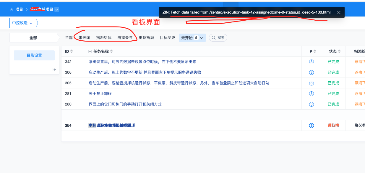 打开看板界面,默认显示无法拉取出来,点击未关闭,或全部选项有提示