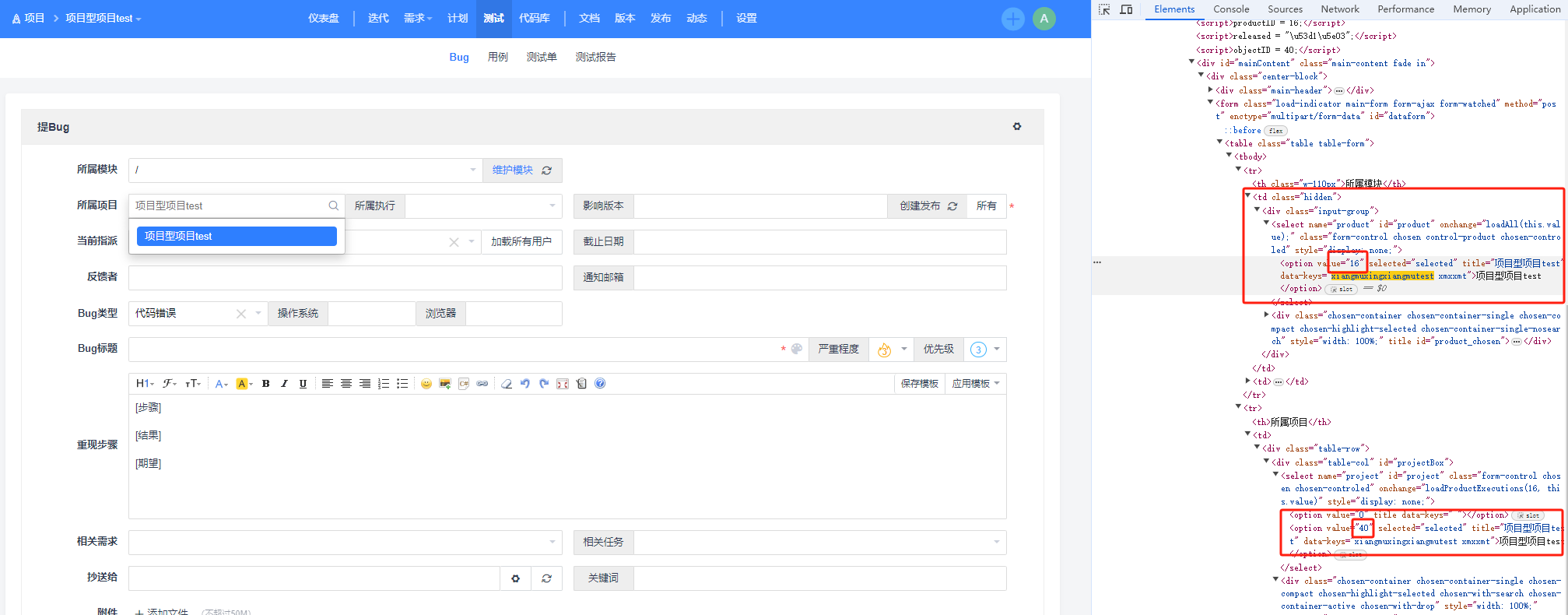 如上图, 我在项目型项目下, 使用API创建缺陷, 发现这个项目下的缺陷, 项目ID是009, 产品006, 项目ID能在列表第一列拿到, 可是这个产品ID''006"不知道如何获取, 或者有什么规则嘛, 尝试使用项目详情的接口, 发现详情里面没有product字段