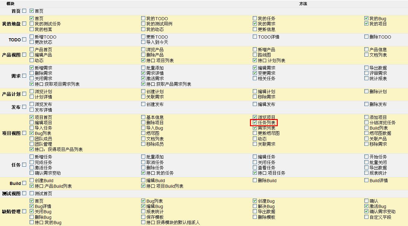 如图设置,设置一个分组,只允许用户报告 bug。如果去掉红框的任务浏览权限,用户将无法进入项目视图。还有其他类似的权限设置问题。建议如果没有该视图就显示其他,而不是真个tab都无法浏览