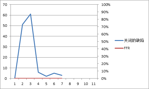 有时候bug关闭的很多,貌似已经趋于稳定。但是,可能很多bug关闭的原因是"不修复",如果FFR(不修复bug总数/总体关闭bug数)超过一定比例(10%),很有可能是项目团队遇到了很大的问题(技术、士气、风气等),导致项目团队开始牺牲质量换取工期。