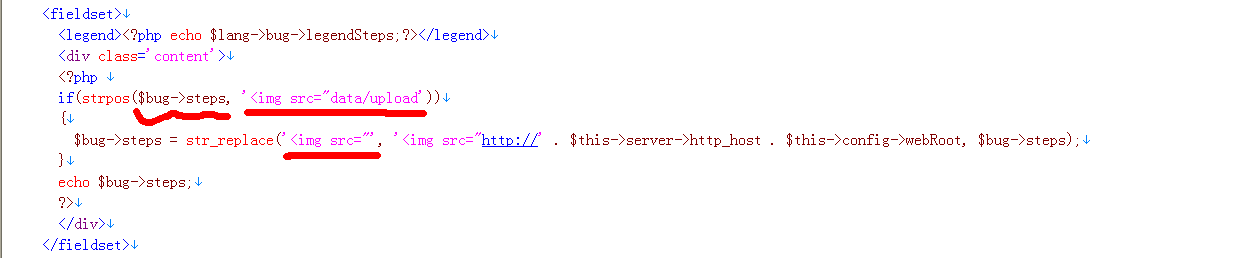 $bug->steps = str_replace('<img alt="" src="', '<img src="http://' . $this->server->http_host . $this->config->webRoot, $bug->steps);