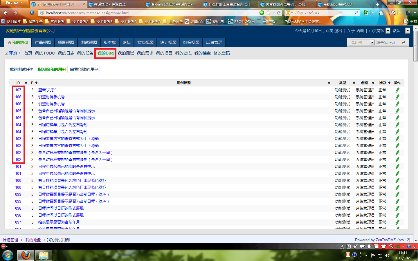第二个问题是三级选项卡选择“我的测试任务”时,二级选项卡定位在“我的测试”。但是三级选项卡选择“指派给我的用例”时,二级选项卡定位在“我的Bug上”。