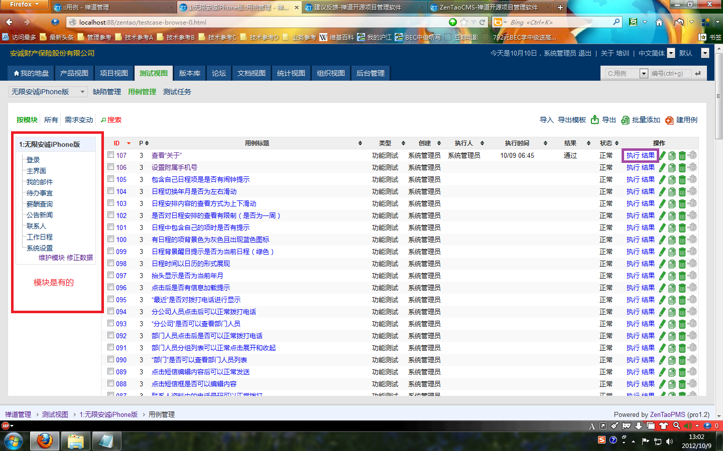 1.禅道用的是专业版1.2(安装采用Windows一键安装包),所有用例都是用Excel导入的。