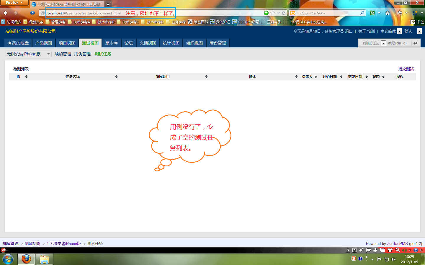 现象:图1中能看到的所有用例会消失,而且虽然还是“测试任务”,但网址已经跟图1的不一样了。(图3)