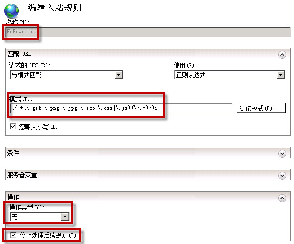 5.先建立第一个规则,这个规则的主要目的是禁止js,css等文件被重写.