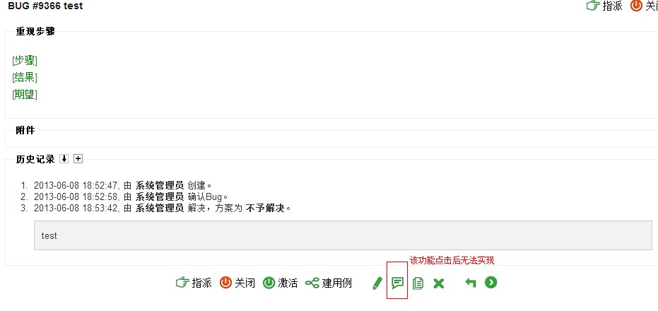 创建并提交一个BUG后,想再给此BUG添加备注,但是功能无法实现,点击备注按钮后无反应