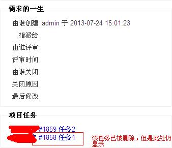 需求单分解任务,删除分解的任务,该需求单的项目任务列表中仍显示已删除的任务单