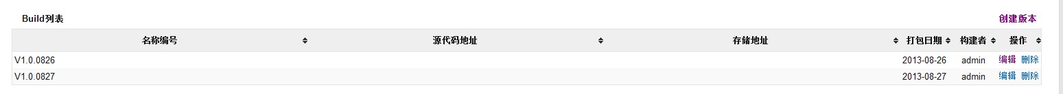 对应的产品中的Build列表