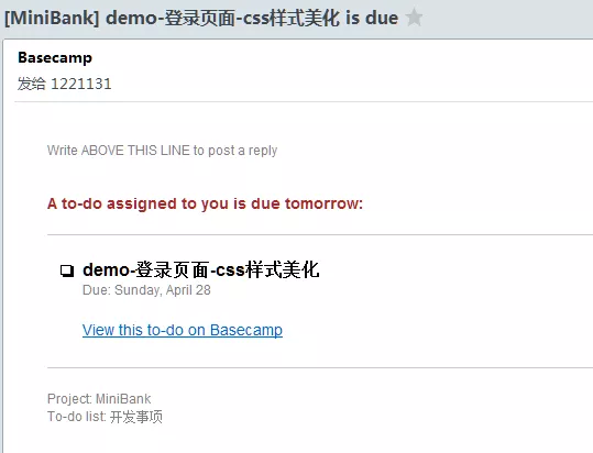 附件附上:禅道的任务提醒,和BaseCamp的邮件提醒,请参考~