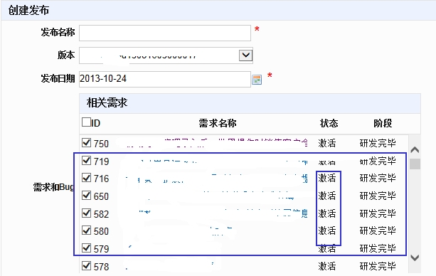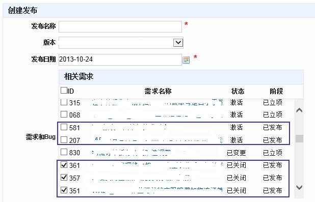 创建发布,默认打钩的需求和BUG的判断逻辑是什么?