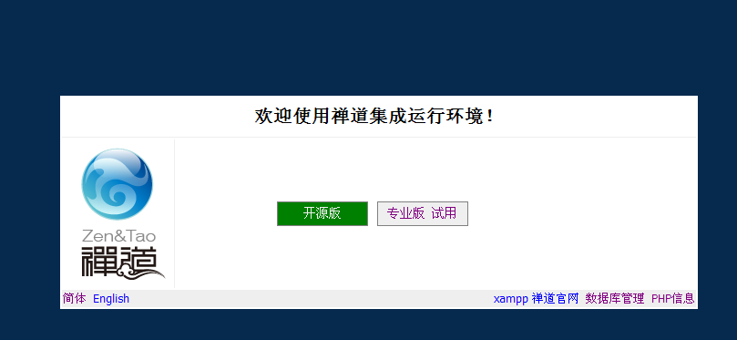 但若重新打开一个网页,“访问禅道”后,单击开源版后,页面就会是空白