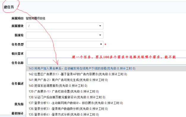 关于长期项目,创建任务时从N多需求中关联的问题