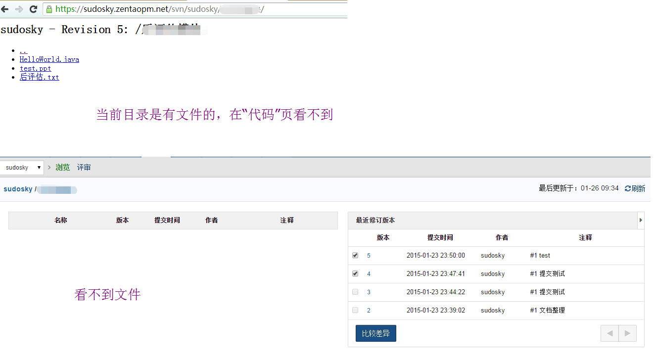 【bug反馈-云禅道】版本库界面不能正常显示文件,只能看到文件夹,不能看到文件。