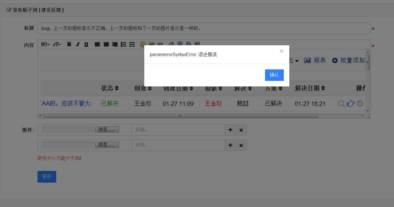 建议反馈本身的bug。保存成功后,会弹出parsererrorSyntaxError语法错误。