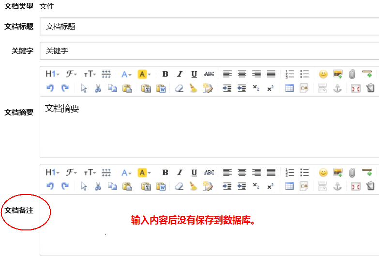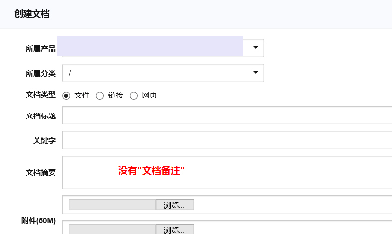 文档:增加界面时没有“文档备注”,修改界面有“文档备注”,但无法保存后浏览看不到