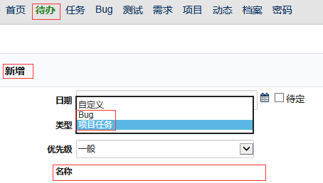 待办 新建 时类型选择 项目任务 或者 Bug 名称输入框消失
