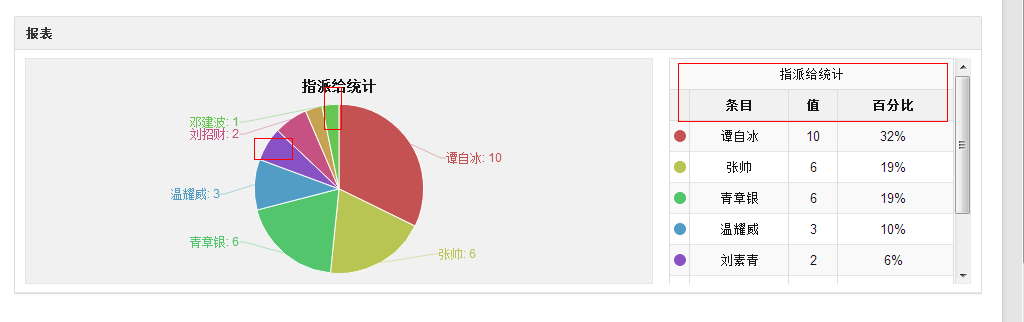 饼状图的一些模块没有明细(绿色和紫色都看不到是哪个人的),旁边的列表,当滚动条拖到最后就看不到列头 应该把列头固定
