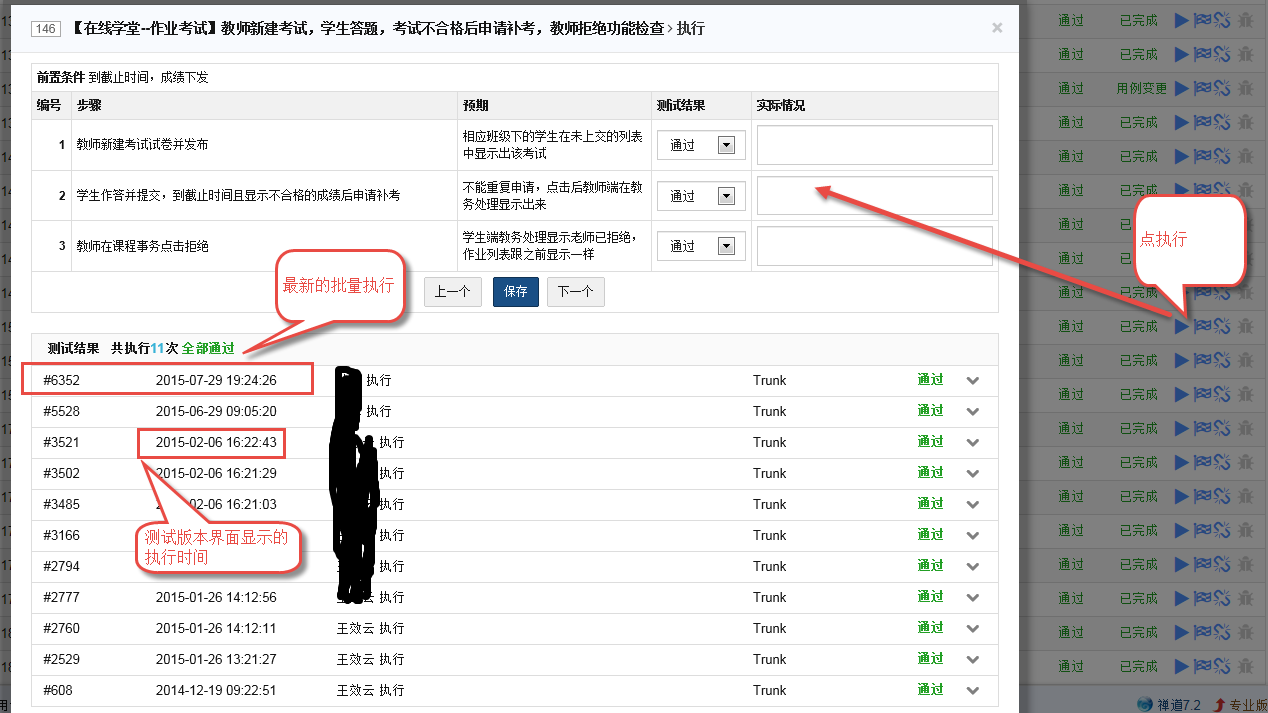 我提到的这个测试版本,是我们回归测试的测试集,里面的用例每次回归都会跑的,批量执行时,有的用例外面的执行时间会更新,有些没更新,但是点“结果”,确实是当时批量执行的时间。