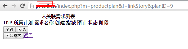 如图:在产品-计划-右上角关联需求,出现如下的页面,还有编码问题