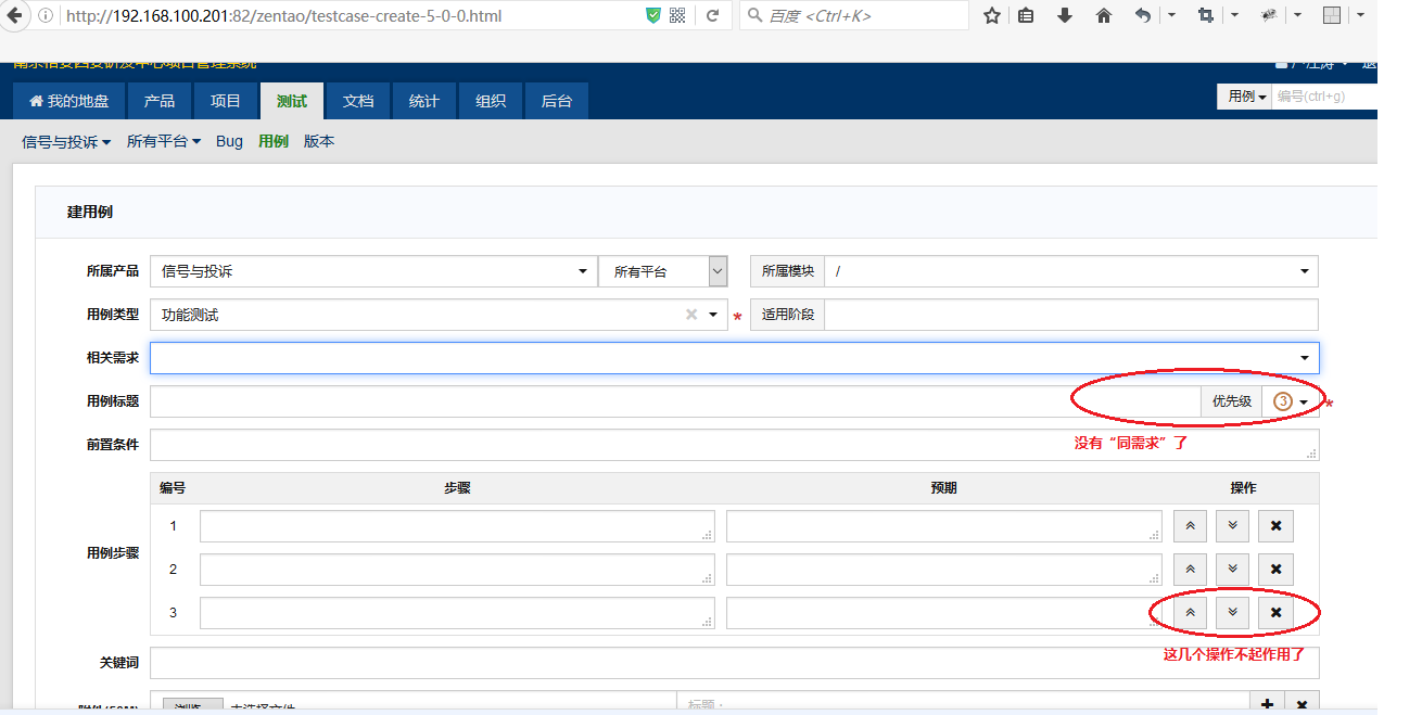 新建测试用例时“同需求”和增加删除步骤功能失效