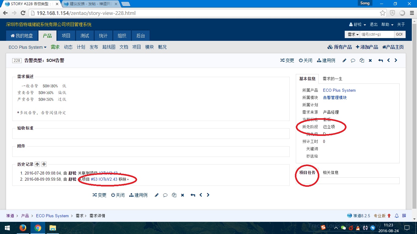 需求从某个项目中已经移除,但是所处阶段还是“已立项” V8.2.5版本