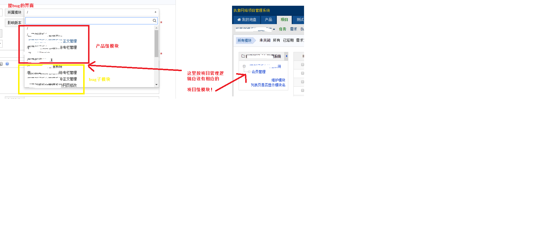 项目级的模块设置以后,在提bug时找不到此对应的模块