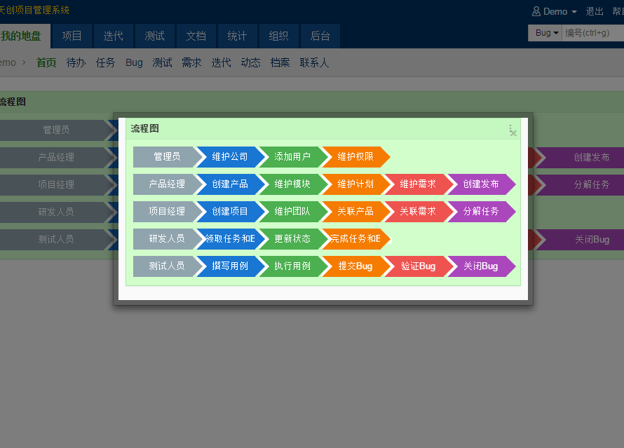 - 新版本可以对用户进行视图的控制,可以设置他们用什么功能。后面我们会计划给用户一个流程的选择,比如可以只做测试管理。
