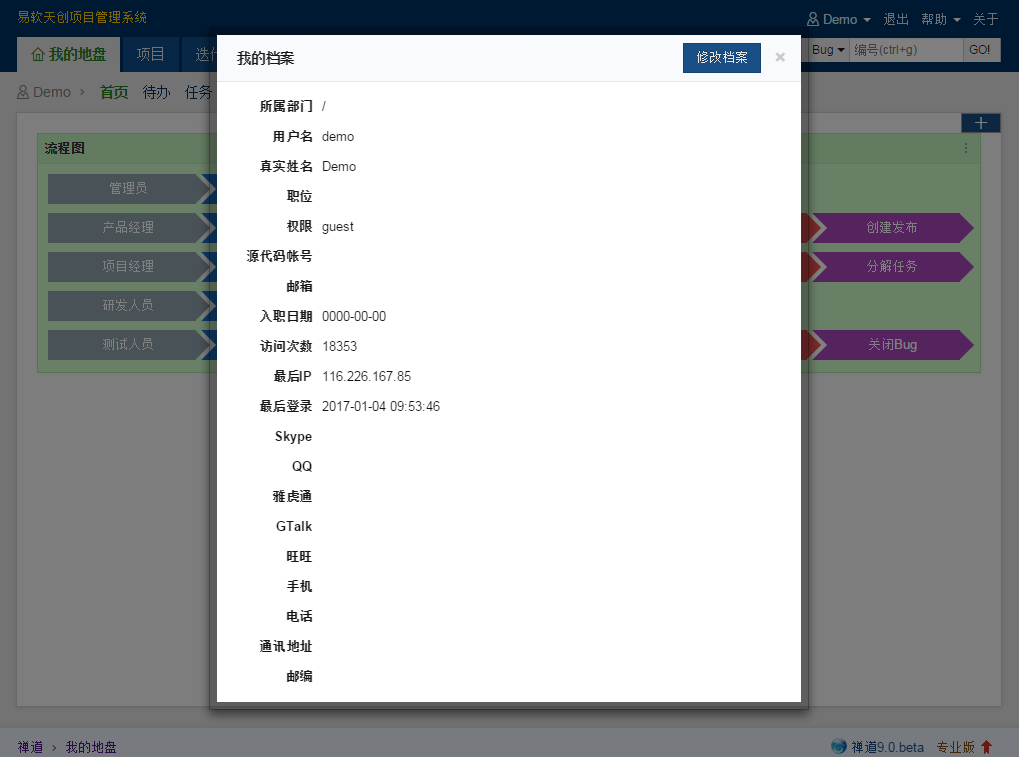 2、禅道是个比较完整的流程管理系统,但不是所有用户都会按这个流程来的,希望能在定制开发的同时多搞点简化模板出来。