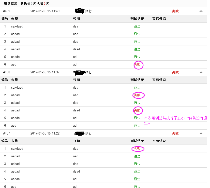 一条用例下边分很多条步骤来编写,在执行用例时候: