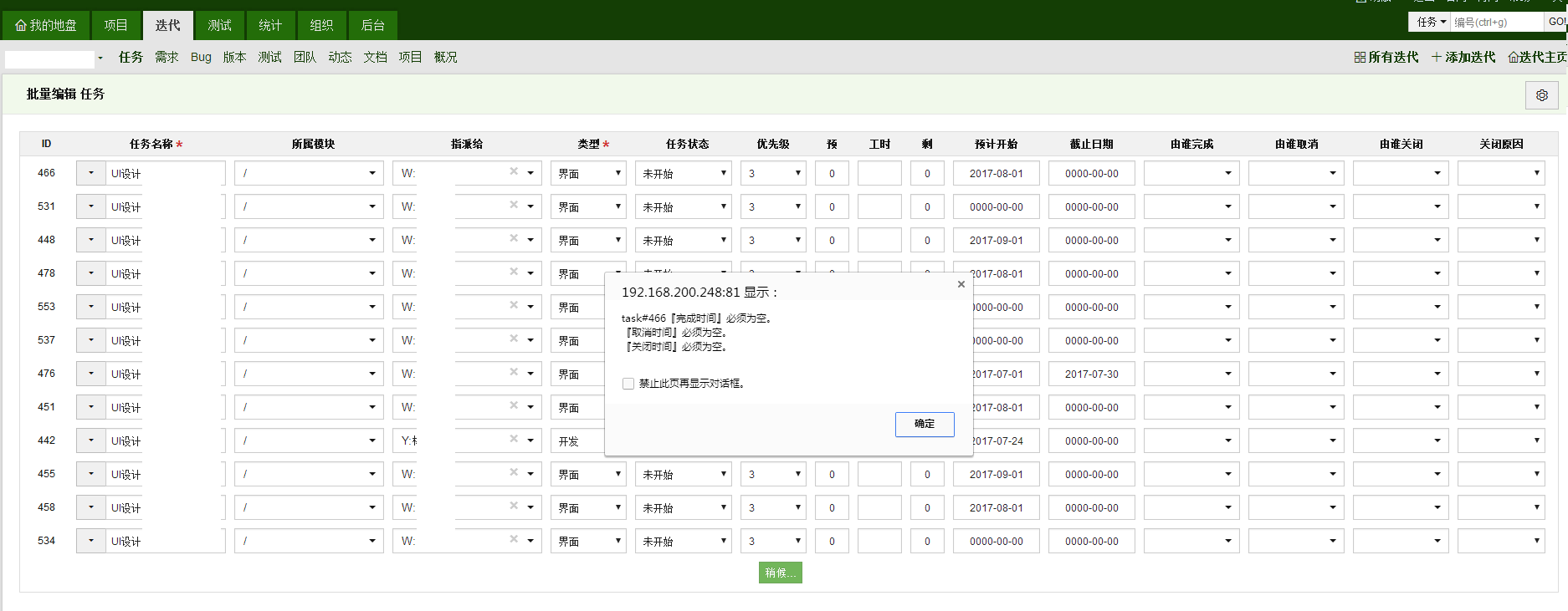 批量编辑任务,报完成时间不能为空